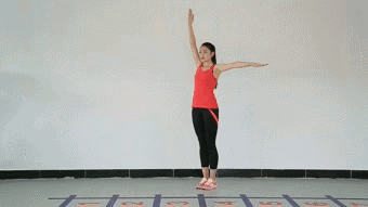 動(dòng)作解析:由單手上舉變雙手上舉,看上去動(dòng)作變化不大,卻大大增肌了動(dòng)作難度,對(duì)于腿部和腰腹的力量、穩(wěn)定性、協(xié)調(diào)性都是極高要求。