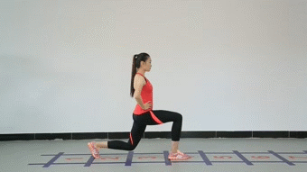 動(dòng)作解析:首先雙腳平行站立,向前邁出一大步下蹲至前腿膝關(guān)節(jié)呈90度,然后迅速蹬起至起始位置,不做停頓,向后后退一大步,再次發(fā)力蹬起至起始位置。這是前后向弓箭步結(jié)合的練習(xí),向前鍛煉伸出腿的力量,向后則鍛煉支撐腿的力量,也就是說這一個(gè)動(dòng)作可以同時(shí)鍛煉雙下肢的力量,也對(duì)于身體協(xié)調(diào)性提出了較高要求。